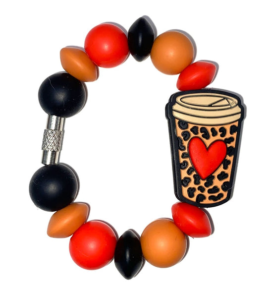 Leopard Print Brown Heart Coffee To Go Cup Stanley Tumbler Cup Handle Charm