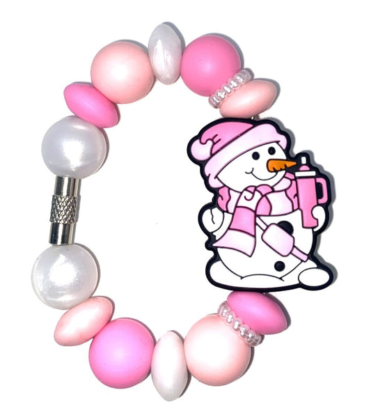 Pink Bougie Snowman Winter Stanley Tumbler Cup Handle Charm