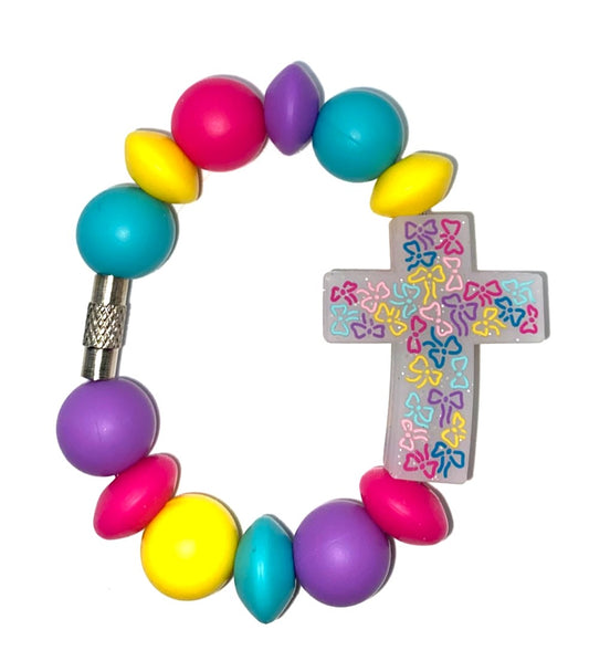 Wooden Cross w/Pink Bow Stanley Tumbler Cup Handle Charm