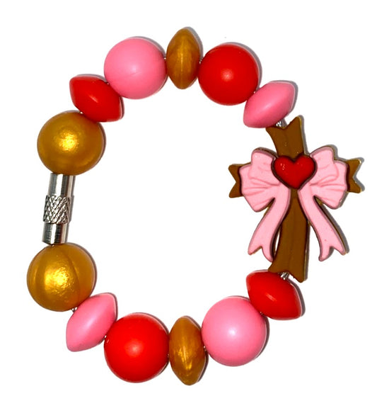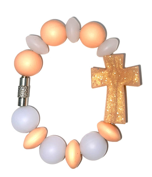 Peach Glitter Cross Stanley Tumbler Cup Handle Charm