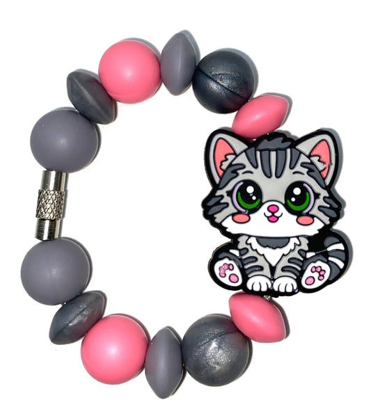 Gray Tabby Cat Stanley Tumbler Cup Handle Charm