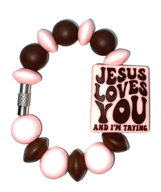 Jesus Loves You And I'm Trying Stanley Tumbler Cup Handle Charm