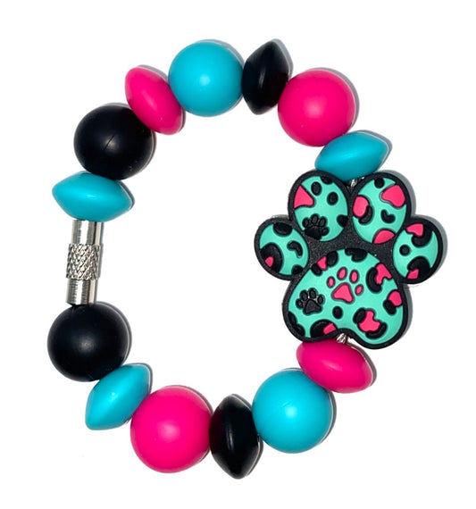 Teal Leopard Dog Paw Print Stanley Tumbler Cup Handle Charm