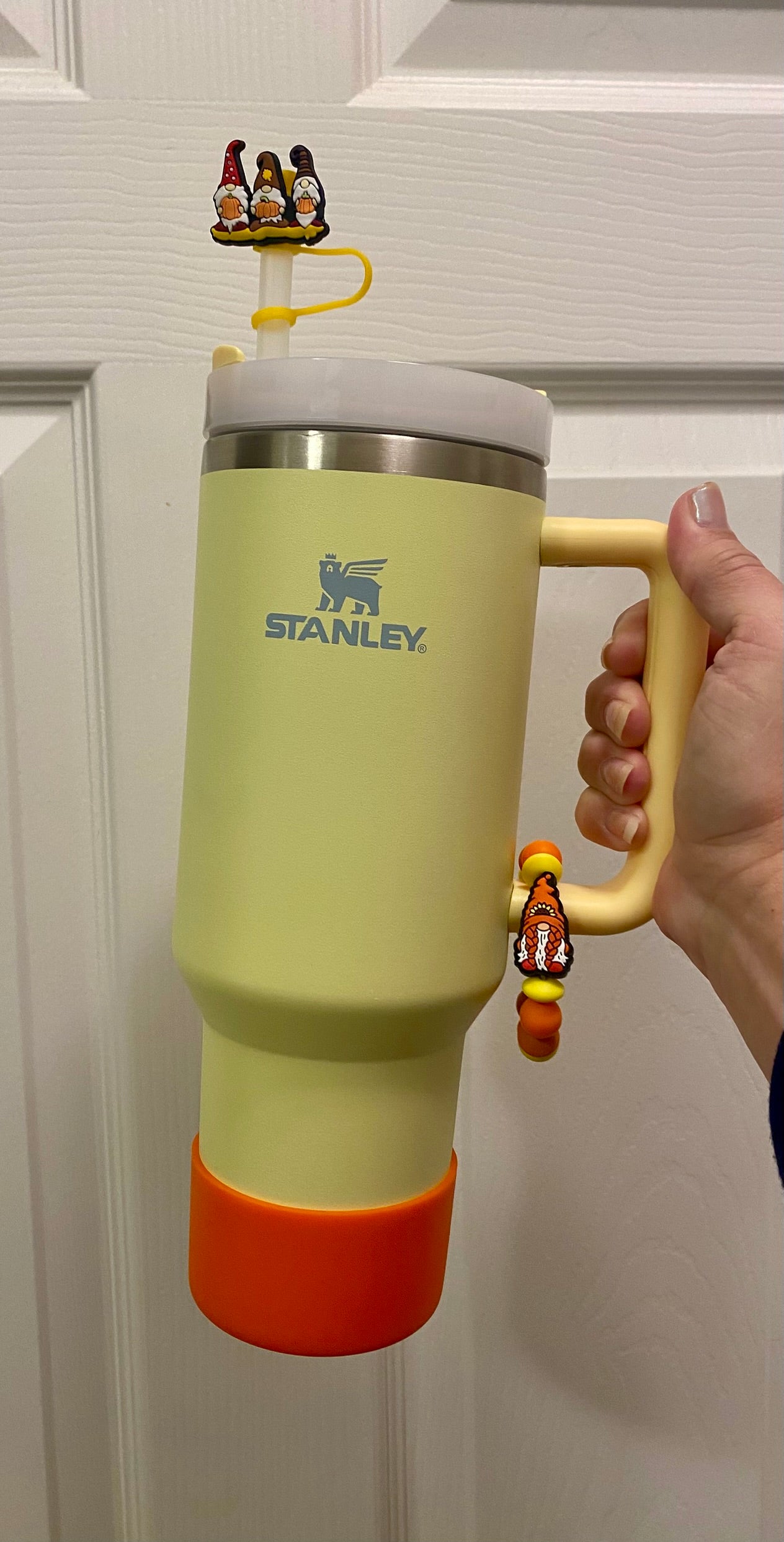 Accessorize your favorite tumbler cup with this adorable 3 Fall Gnomes Straw Topper. This cover fits 10mm/0.4inch straws and is compatible with Stanley 30 & 40 oz tumblers straws. Made from silicone.