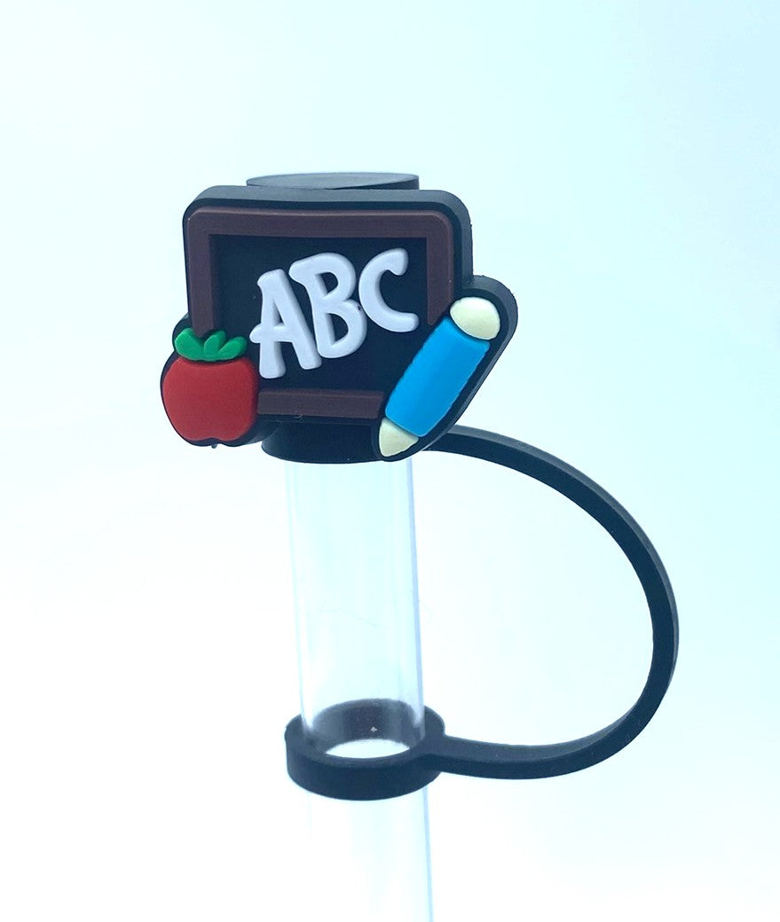 Accessorize your favorite tumbler cup with this adorable ABC Chalkboard Teacher Straw Topper. This cover fits 10mm/0.4inch straws and is compatible with Stanley 30 & 40 oz tumblers straws. Made from silicone.