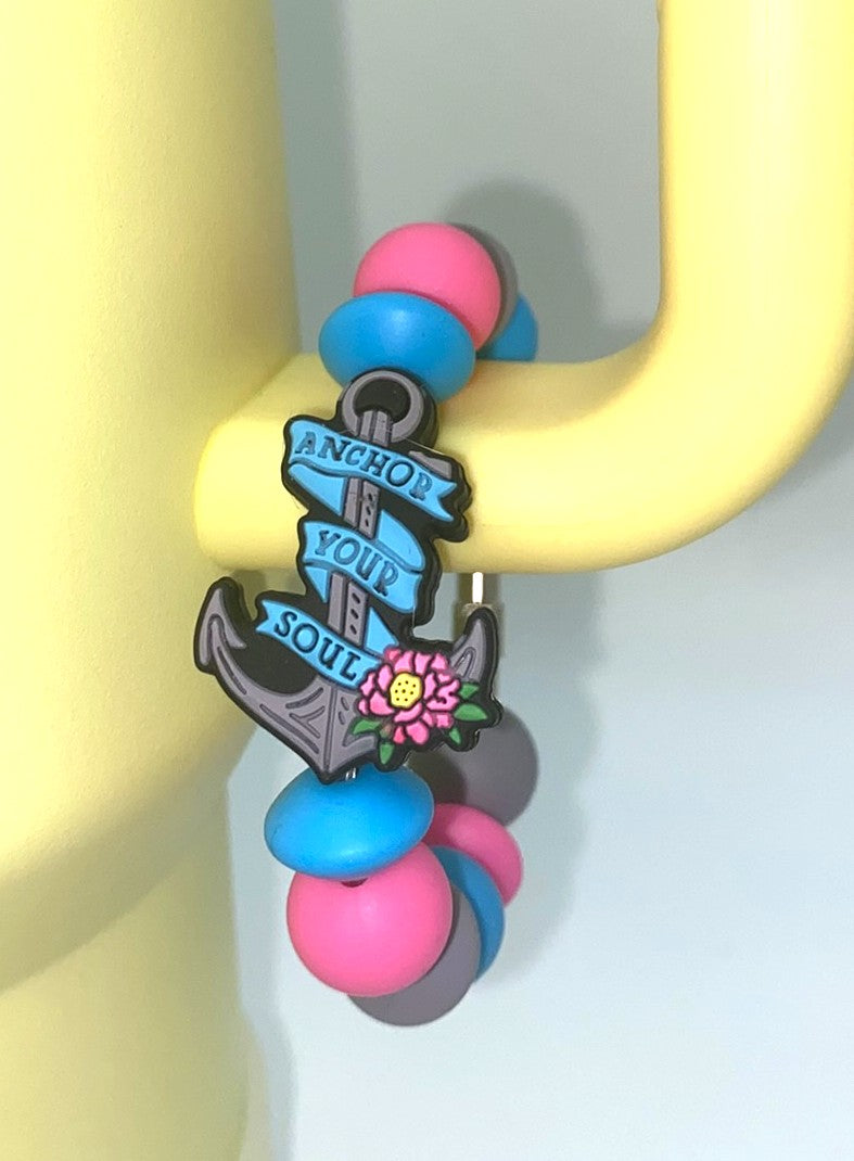 Accessorize your tumbler cup with this inspirational Anchor Your Soul silicone bead cup charm. These cup charms are made to clasp around your favorite tumbler's handle. They are simple to take off and put on, so depending on your mood for the day, you can swap them out easily!