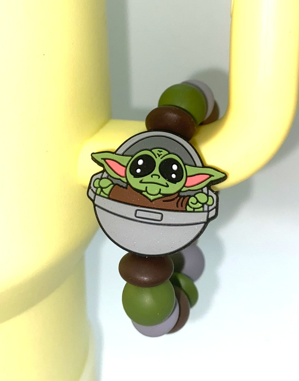 Accessorize your tumbler cup with this adorable Baby Green Alien Child In Pod Space Wars silicone bead cup charm. These cup charms are made to clasp around your favorite tumbler's handle. They are simple to take off and put on, so depending on your mood for the day, you can swap them out easily!