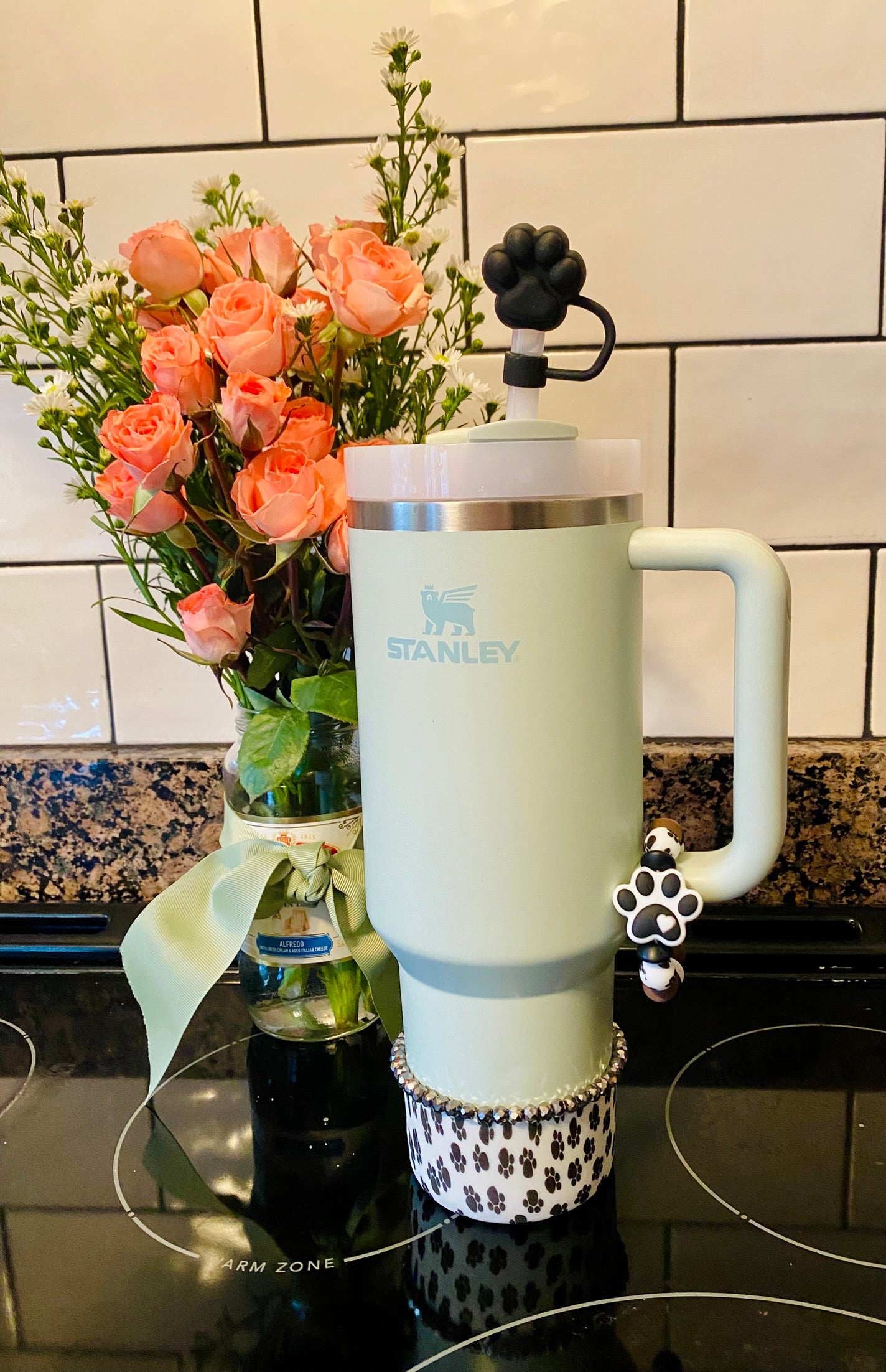 Accessorize your favorite tumbler cup with this adorable 3D Black Dog Paw Straw Topper. This cover fits 10mm/0.4inch straws and is compatible with Stanley 30 & 40 oz tumblers straws. Made from silicone.