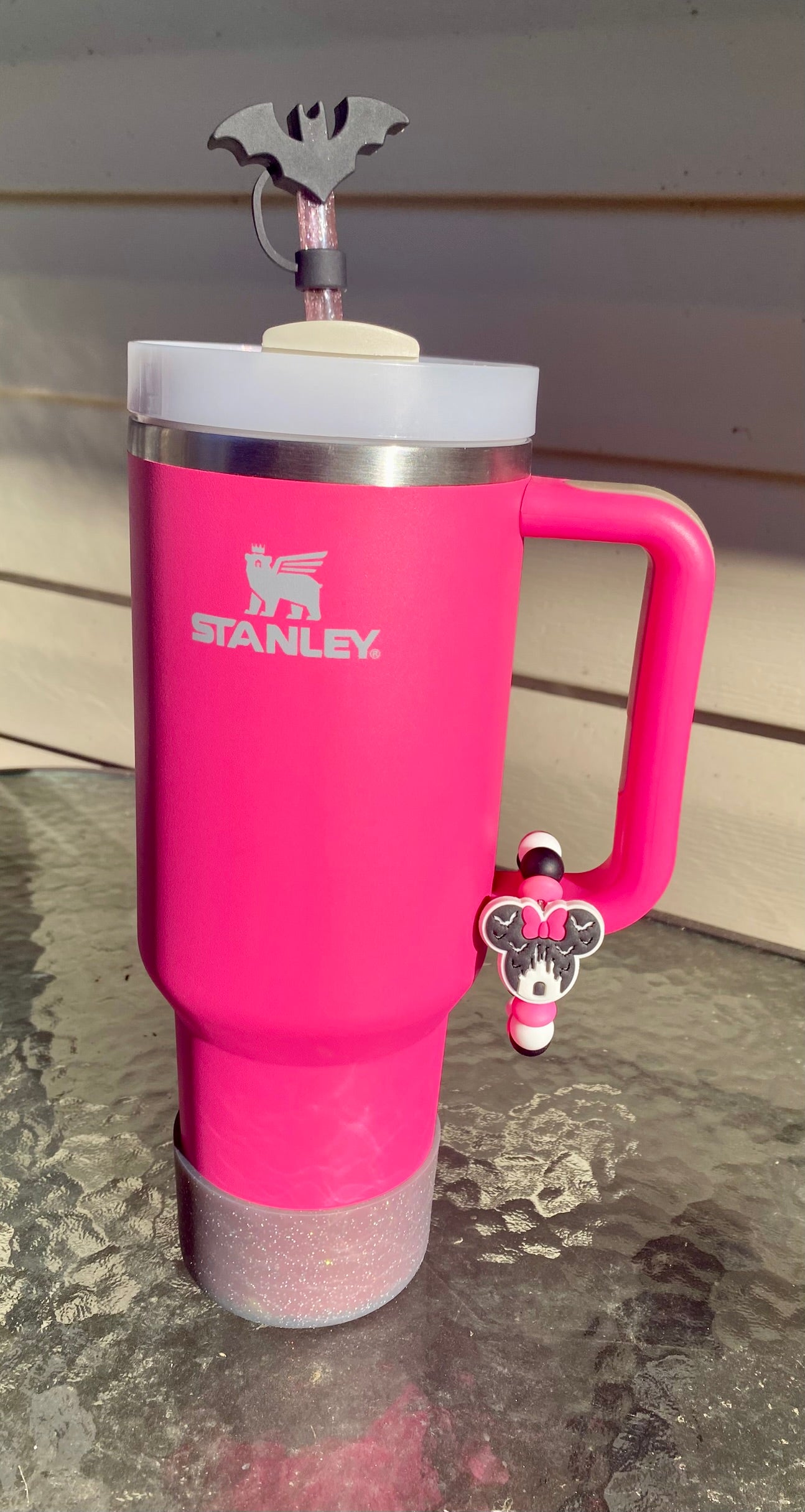 Accessorize your favorite tumbler cup with this adorable 3D Black Scary Bat Straw Topper. This cover fits 10mm/0.4inch straws and is compatible with Stanley 30 & 40 oz tumblers straws. Made from silicone.