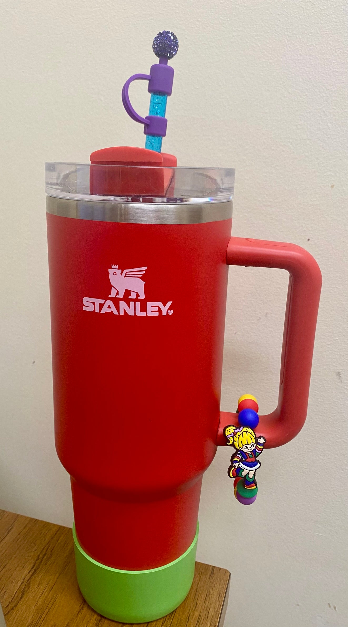 Accessorize your favorite tumbler cup with this adorable Purple Bling Disco Ball Straw Topper. This cover fits 10mm/0.4inch straws and is compatible with Stanley 30 & 40 oz tumblers straws. Made from plastic & silicone.