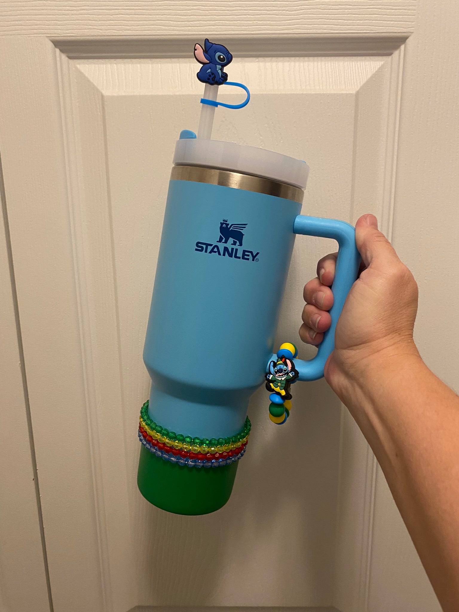 Accessorize your favorite tumbler cup with this adorable Blue Alien Sitting Straw Topper. This cover fits 10mm/0.4inch straws and is compatible with Stanley 30 & 40 oz tumblers straws. Made from silicone.