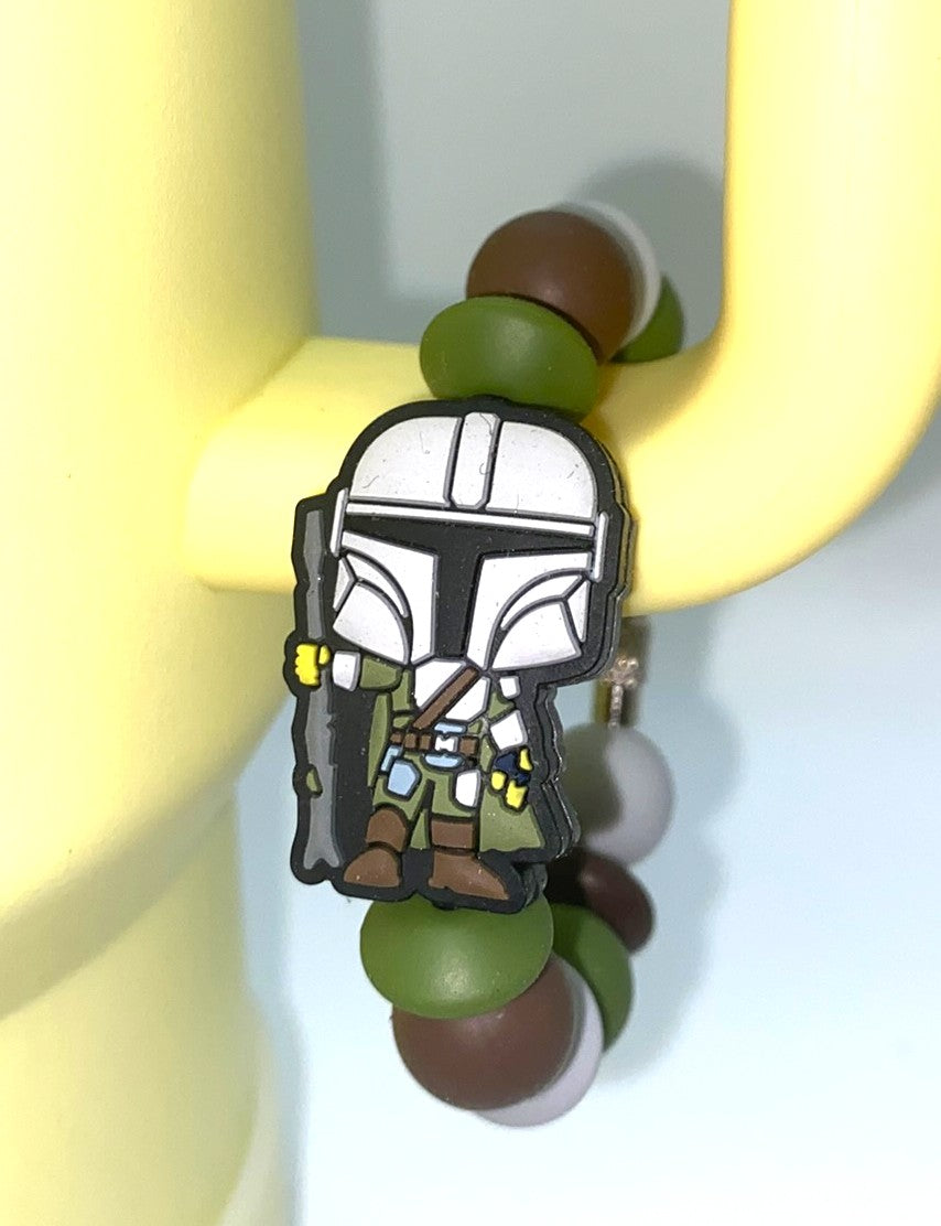 Accessorize your tumbler cup with this amazing Bounty Hunter Space Wars silicone bead cup charm. These cup charms are made to clasp around your favorite tumbler's handle. They are simple to take off and put on, so depending on your mood for the day, you can swap them out easily!