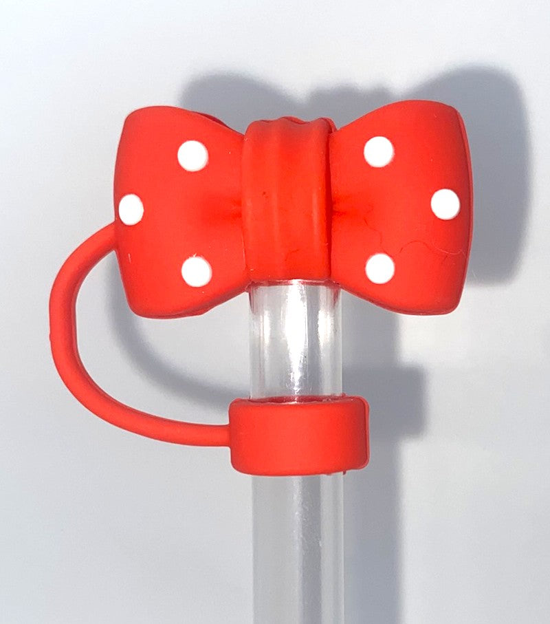Accessorize your favorite tumbler cup with this adorable Red & White Polka Dot Bow Straw Topper. This cover fits 10mm/0.4inch straws and is compatible with Stanley 30 & 40 oz tumblers straws. Made from silicone.