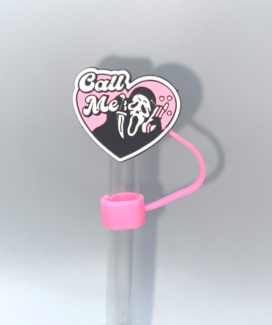 Accessorize your favorite tumbler cup with this amazing Call Me Ghost Face Scream Hearts Telephone Straw Topper. This cover fits 10mm/0.4inch straws and is compatible with Stanley 30 & 40 oz tumblers straws. Made from silicone.
