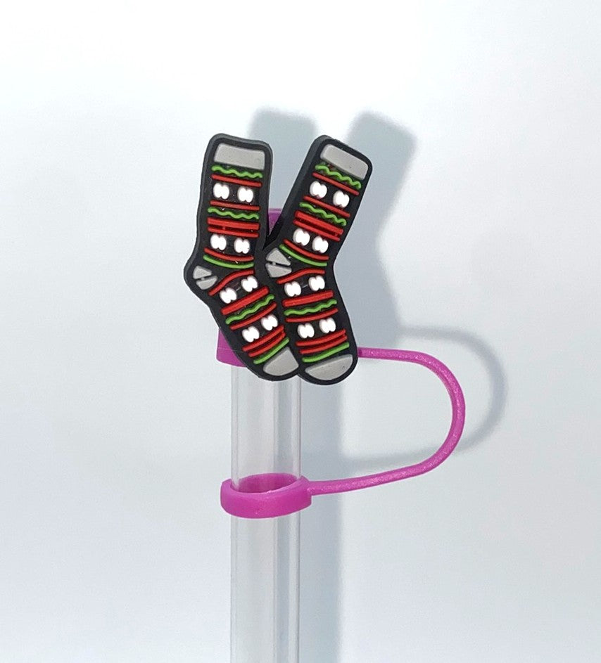 Accessorize your favorite tumbler cup with this adorable Christmas Socks Straw Topper. This cover fits 10mm/0.4inch straws and is compatible with Stanley 30 & 40 oz tumblers straws. Made from silicone.