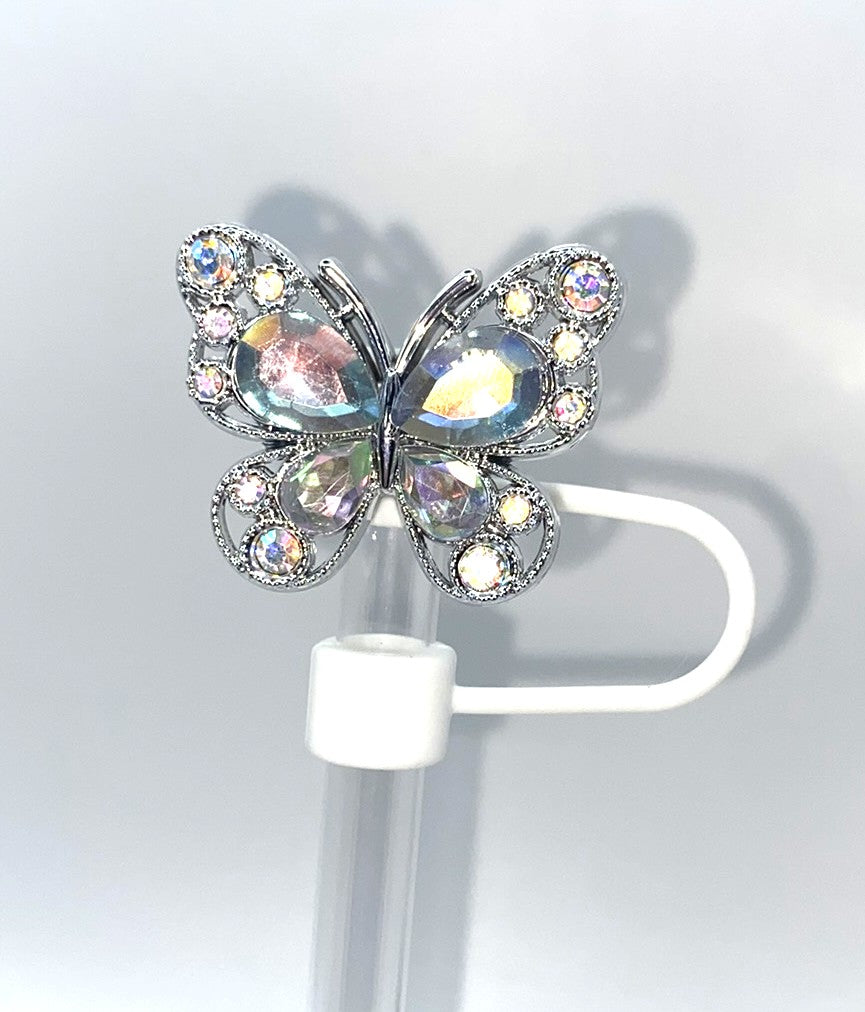 Accessorize your favorite tumbler cup with this adorable Clear Crystal Butterfly Straw Topper. This cover fits 10mm/0.4inch straws and is compatible with Stanley 30 & 40 oz tumblers straws. Made from plastic & silicone.
