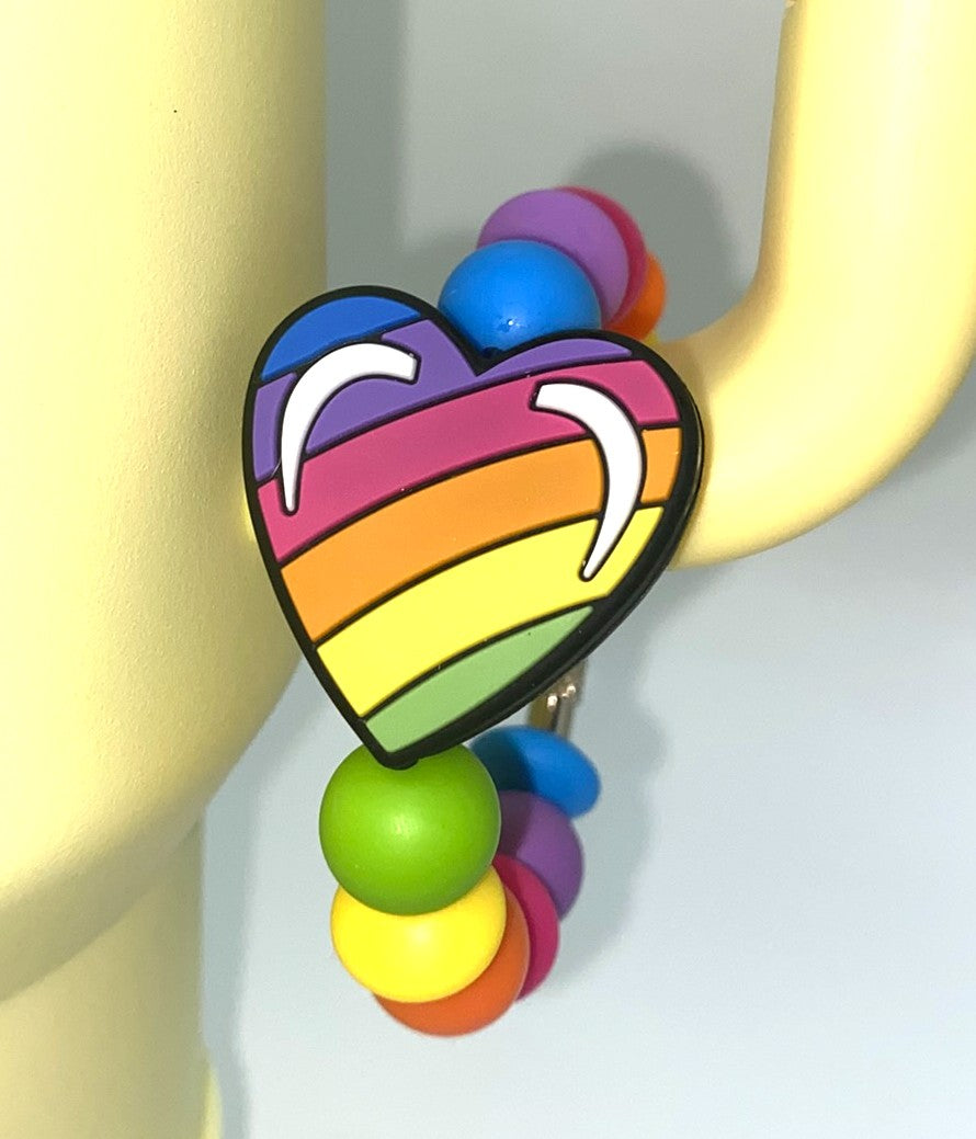 Accessorize your tumbler cup with this adorable Colorful LF Heart silicone bead cup charm. These cup charms are made to clasp around your favorite tumbler's handle. They are simple to take off and put on, so depending on your mood for the day, you can swap them out easily!