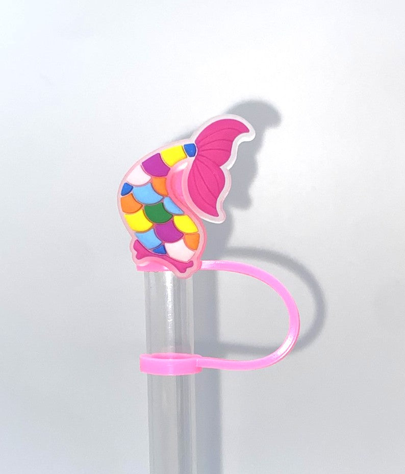 Accessorize your favorite tumbler cup with this adorable Colorful Mosaic Mermaid Tail Straw Topper. This cover fits 10mm/0.4inch straws and is compatible with Stanley 30 & 40 oz tumblers straws. Made from silicone.