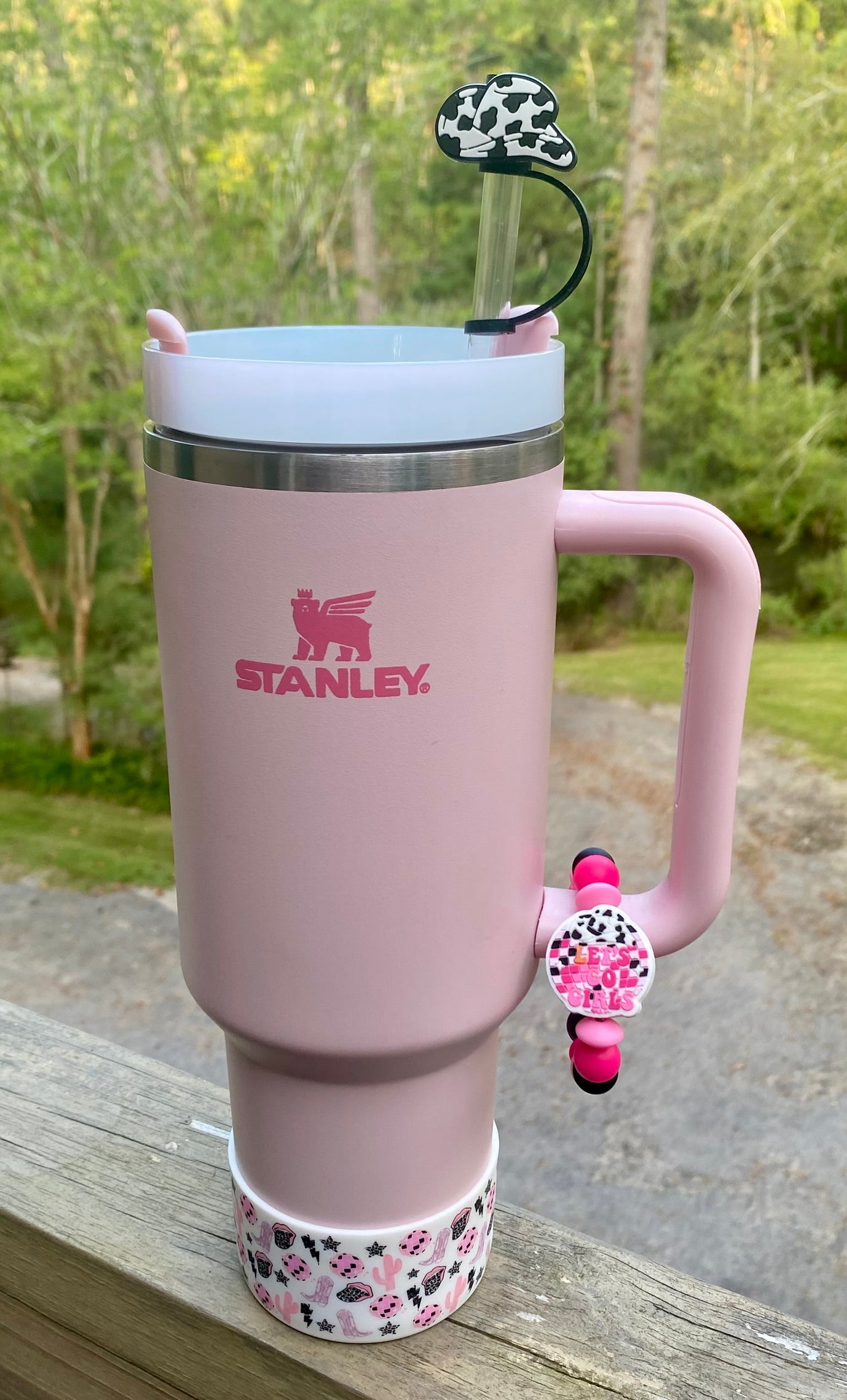 Accessorize your favorite tumbler cup with this adorable Cow Spots Cowboy Hat Straw Topper. This cover fits 10mm/0.4inch straws and is compatible with Stanley 30 & 40 oz tumblers straws. Made from silicone.