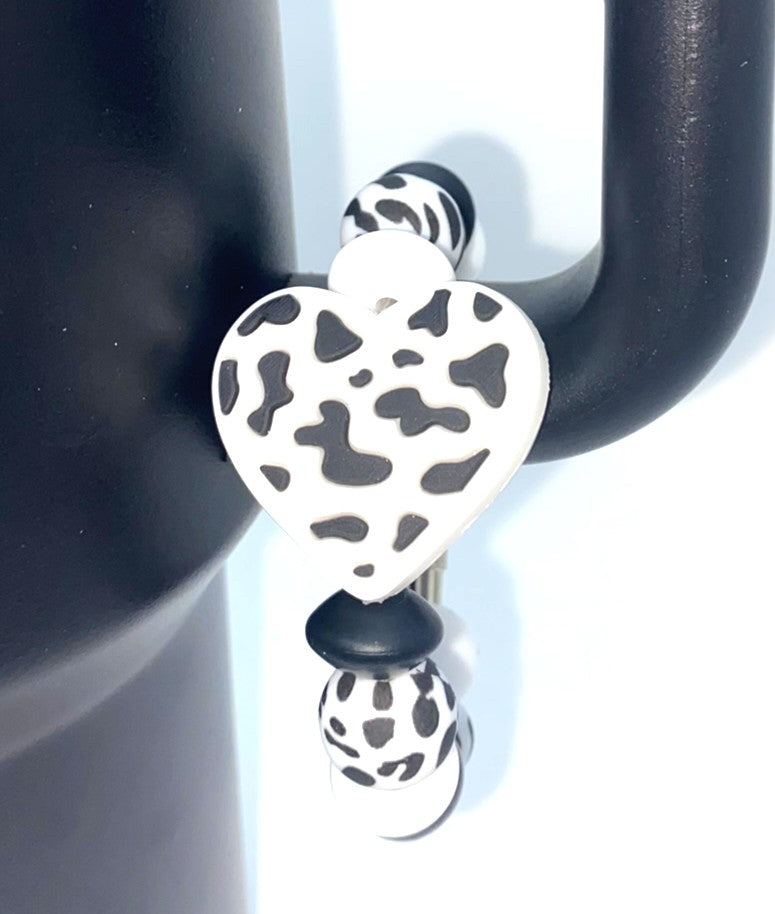 Accessorize your tumbler cup with this adorable Cow Print Heart silicone bead cup charm. These cup charms are made to clasp around your favorite tumbler's handle. They are simple to take off and put on, so depending on your mood for the day, you can swap them out easily!