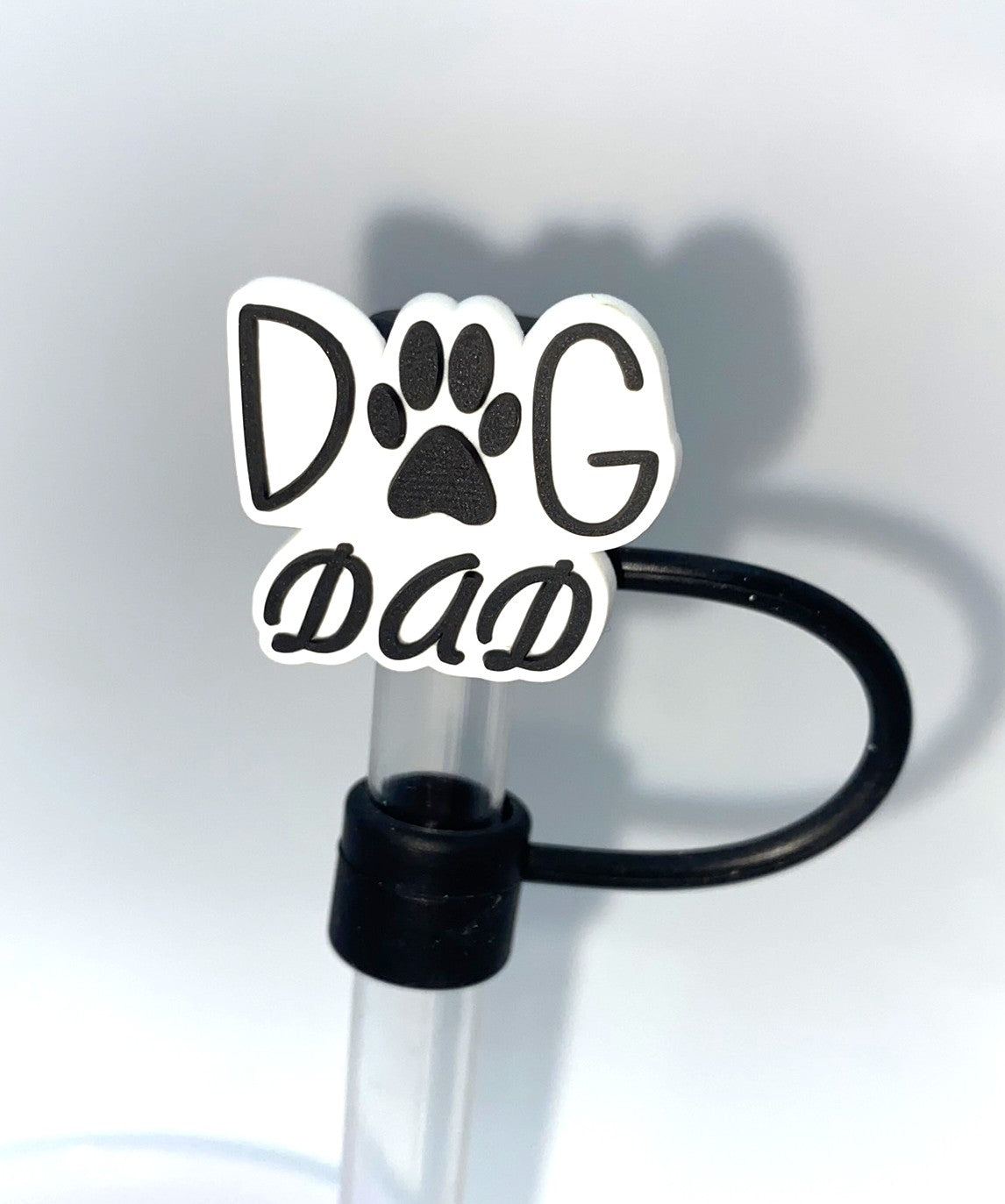 Accessorize your favorite tumbler cup with this adorable Dog Dad Straw Topper. This cover fits 10mm/0.4inch straws and is compatible with Stanley 30 & 40 oz tumblers straws. Made from silicone.