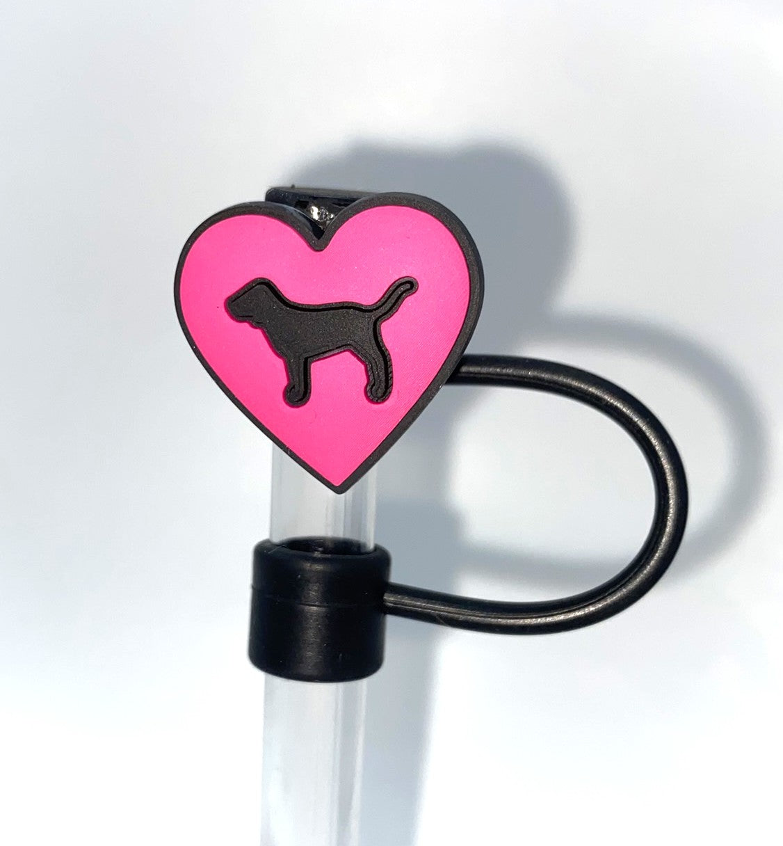 Accessorize your favorite tumbler cup with this adorable Dog Pink Heart Straw Topper. This cover fits 10mm/0.4inch straws and is compatible with Stanley 30 & 40 oz tumblers straws. Made from silicone.