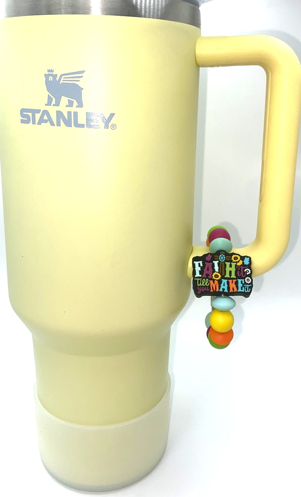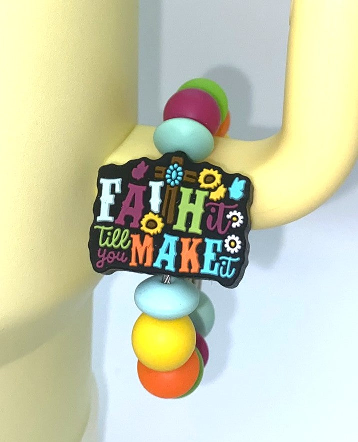 Accessorize your tumbler cup with this beautiful Faith It Till You Make It silicone bead cup charm. These cup charms are made to clasp around your favorite tumbler's handle. They are simple to take off and put on, so depending on your mood for the day, you can swap them out easily!