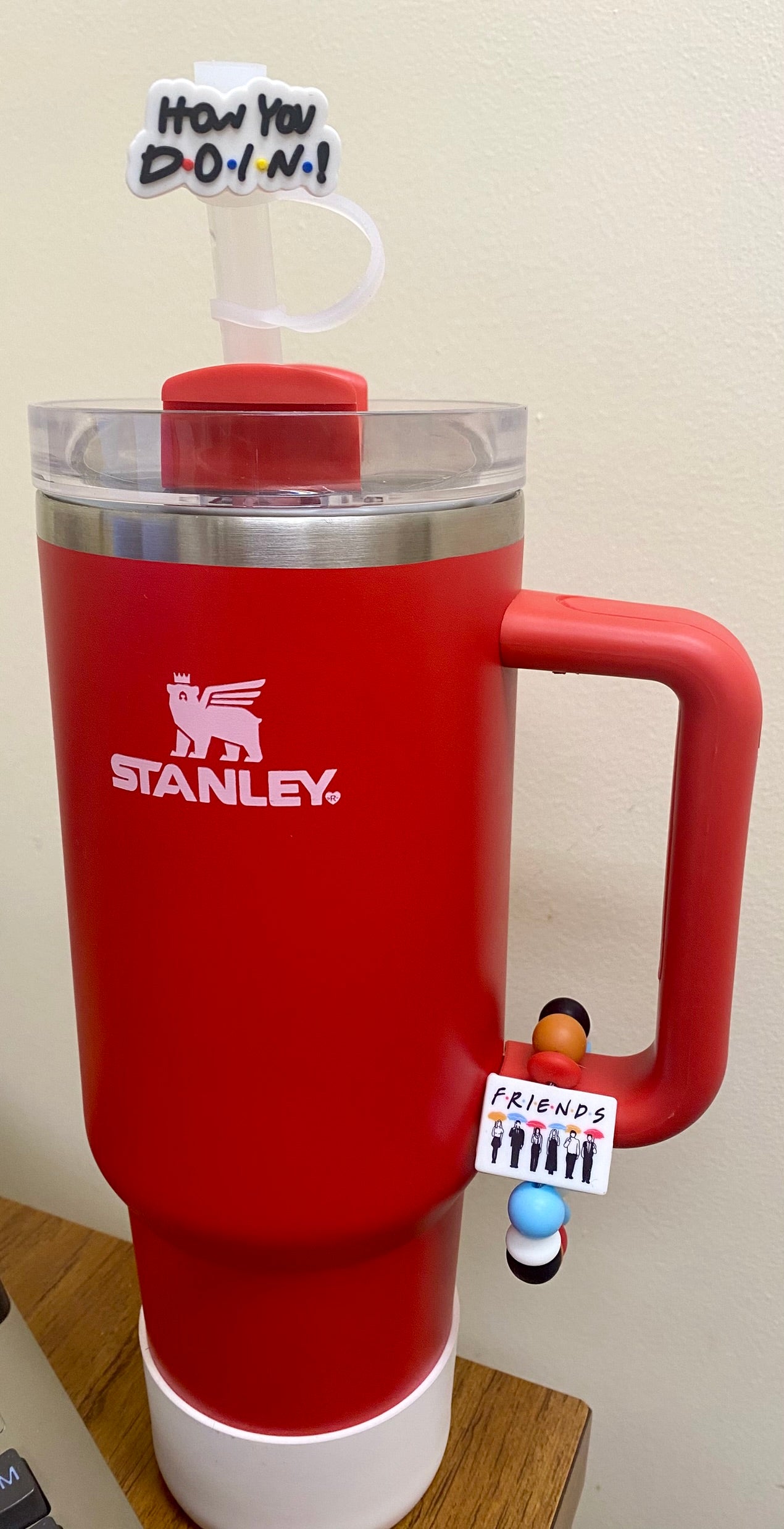 Accessorize your favorite tumbler cup with this adorable Friends How You Doin Straw Topper. This cover fits 10mm/0.4inch straws and is compatible with Stanley 30 & 40 oz tumblers straws. Made from silicone.