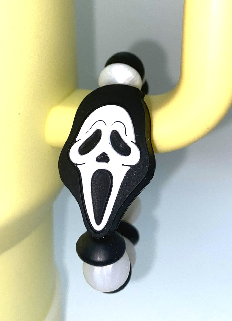 Accessorize your tumbler cup with this amazing Scream Mask Horror Villain silicone bead cup charm. These cup charms are made to clasp around your favorite tumbler's handle. They are simple to take off and put on, so depending on your mood for the day, you can swap them out easily!
