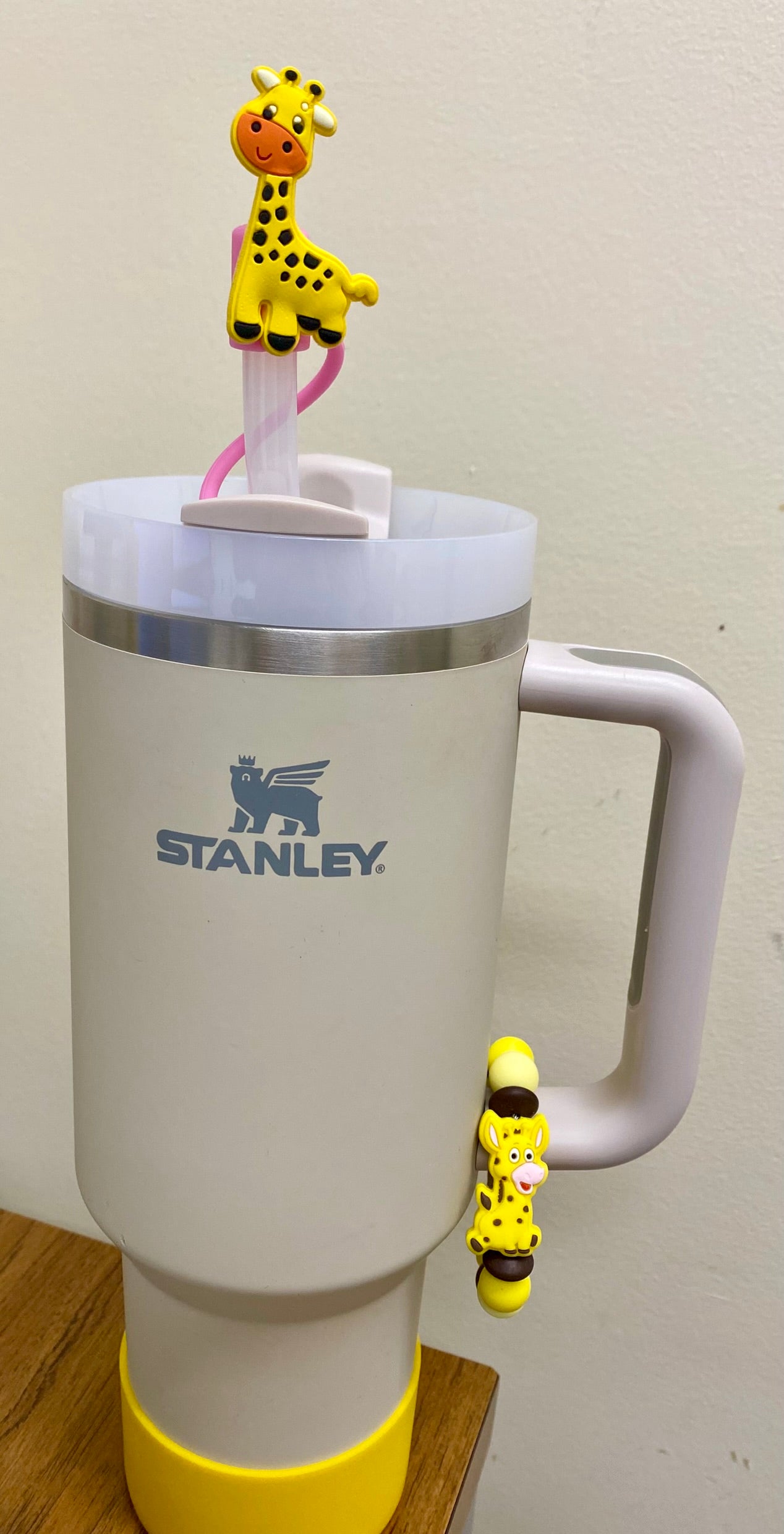 Accessorize your favorite tumbler cup with this adorable Giraffe Straw Topper. This cover fits 10mm/0.4inch straws and is compatible with Stanley 30 & 40 oz tumblers straws. Made from silicone.