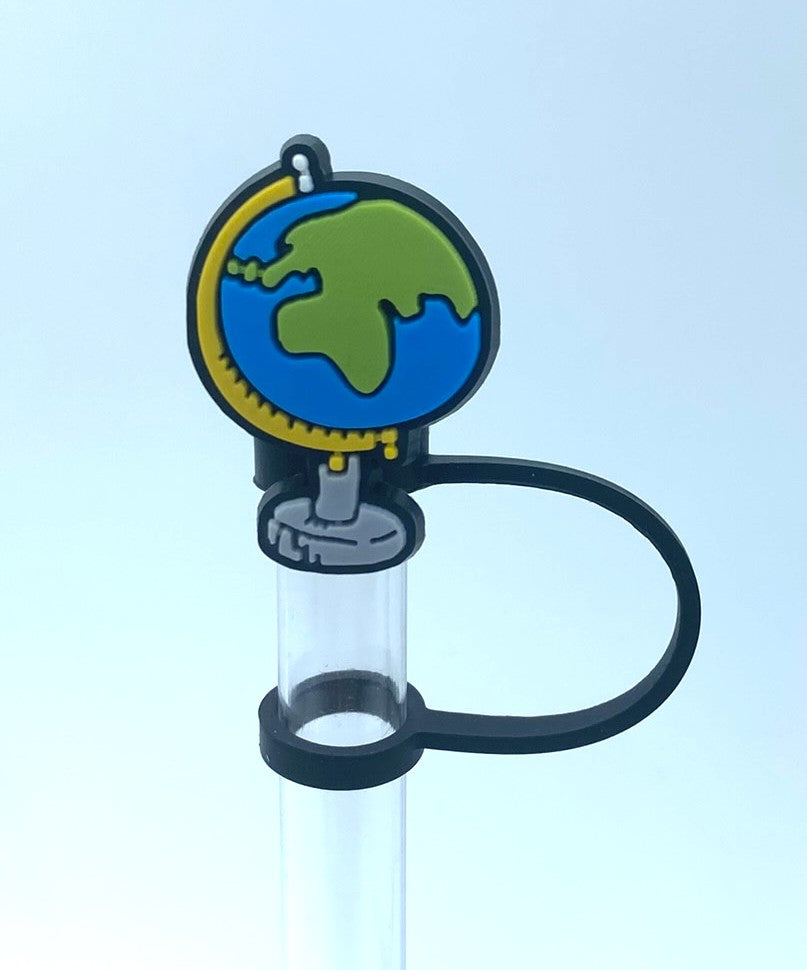 Accessorize your favorite tumbler cup with this adorable Globe Teacher Straw Topper. This cover fits 10mm/0.4inch straws and is compatible with Stanley 30 & 40 oz tumblers straws. Made from silicone.