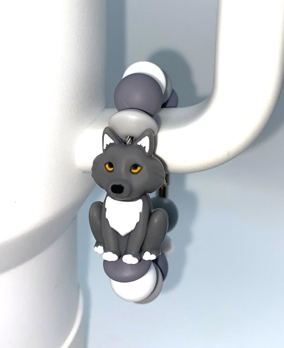 Accessorize your tumbler cup with this adorable 3D Gray Wolf silicone bead cup charm. These cup charms are made to clasp around your favorite tumbler's handle. They are simple to take off and put on, so depending on your mood for the day, you can swap them out easily!