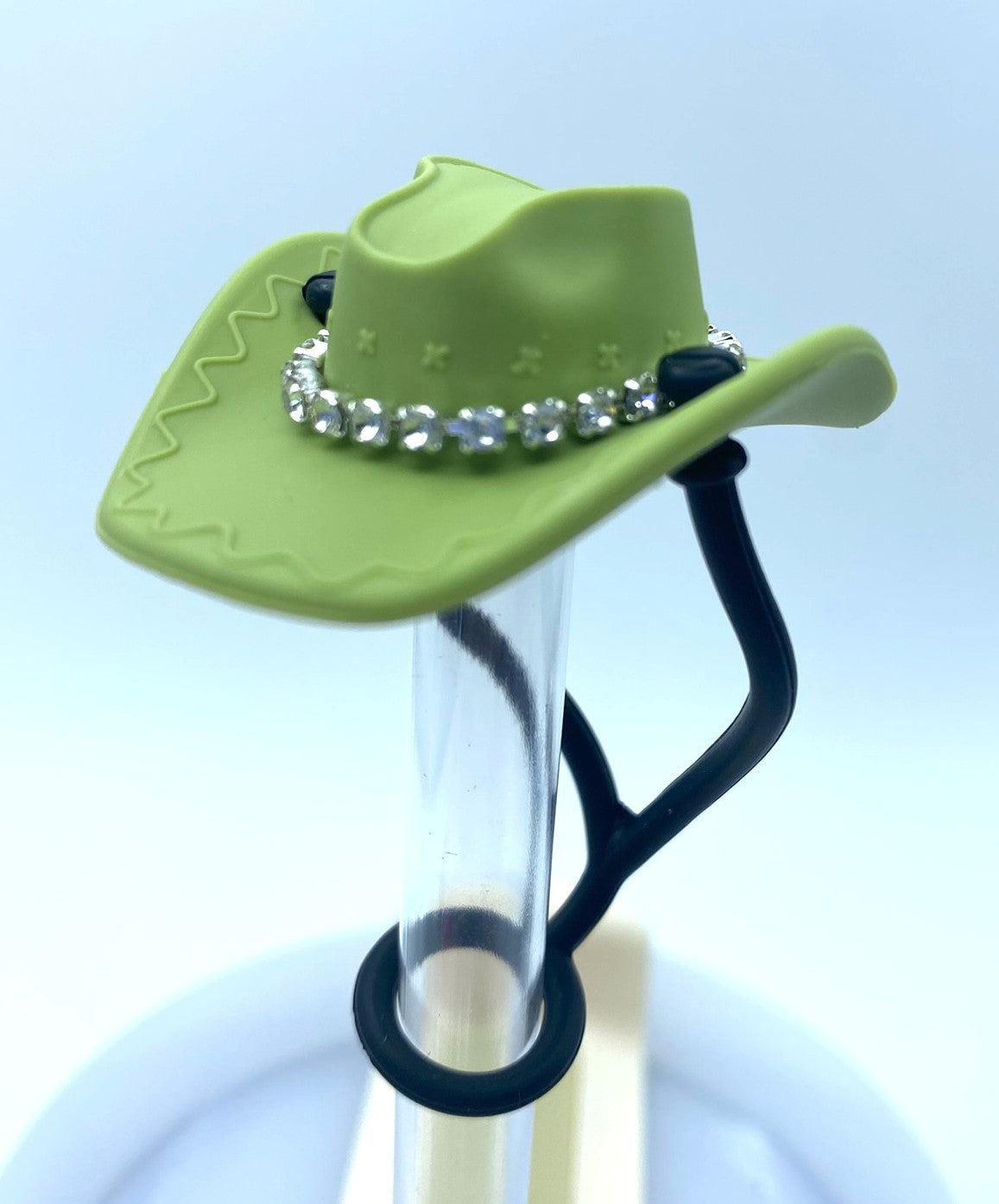 Accessorize your favorite tumbler cup with this adorable Green Bling Cowboy Hat Straw Topper. This cover fits 10mm/0.4inch straws and is compatible with Stanley 30 & 40 oz tumblers straws. Made from silicone.