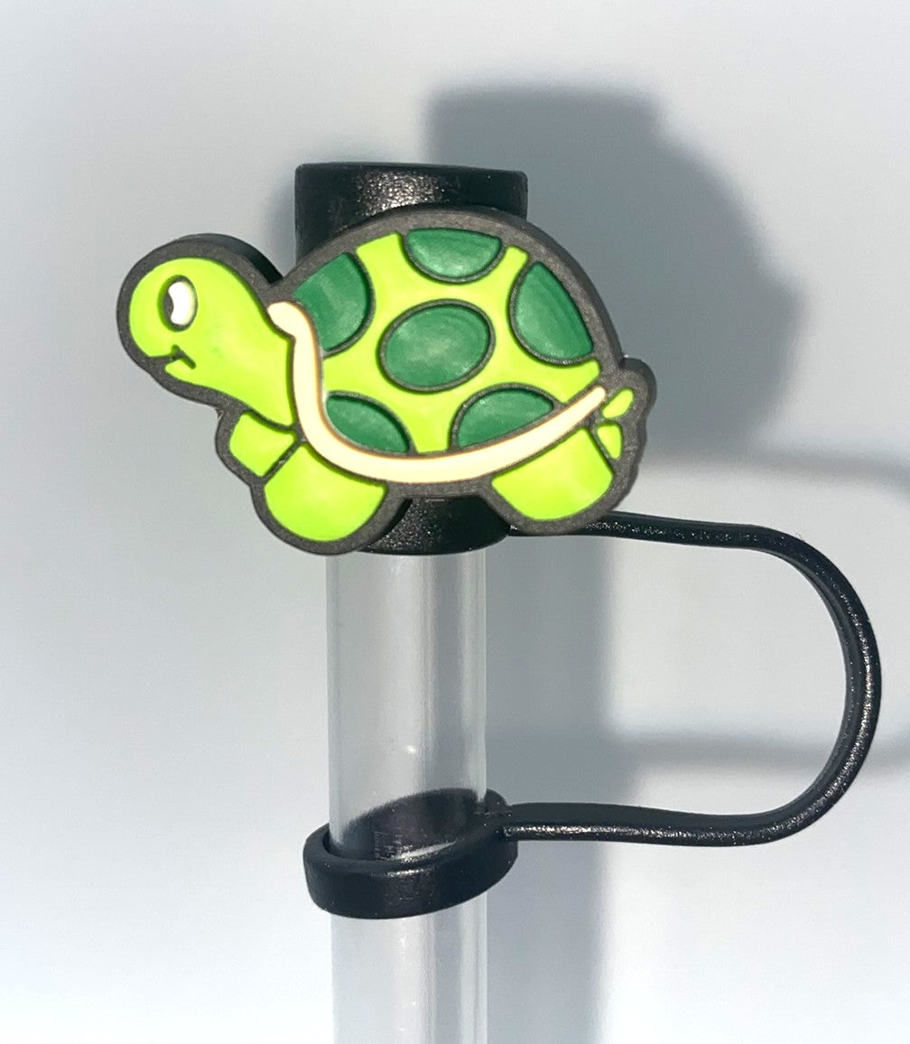 Accessorize your favorite tumbler cup with this adorable Green Turtle w/Spotted Shell straw topper. This cover fits 10mm/0.4inch straws and is compatible with Stanley 30 & 40 oz tumblers straws. Made from silicone.