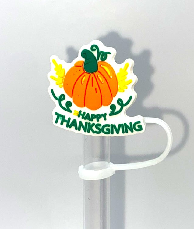 Accessorize your favorite tumbler cup with this adorable Happy Thanksgiving Pumpkin Straw Topper. This cover fits 10mm/0.4inch straws and is compatible with Stanley 30 & 40 oz tumblers straws. Made from silicone.