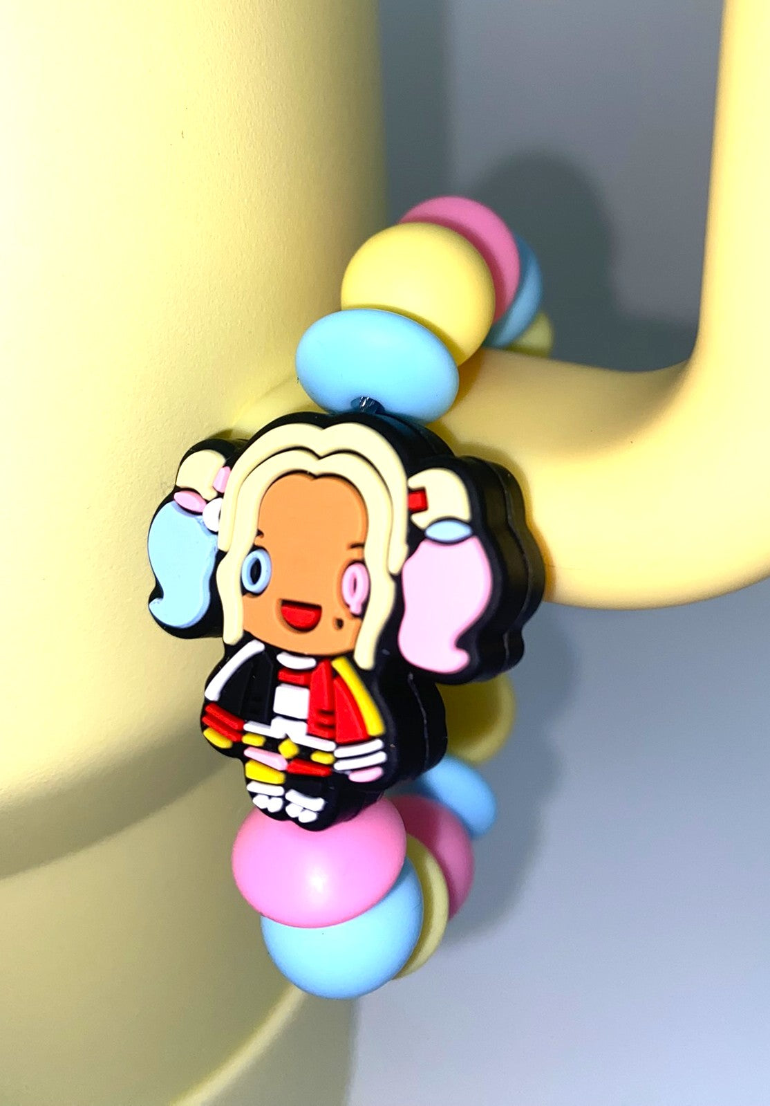 Accessorize your tumbler cup with this adorable Harley Quinn Villain silicone bead cup charm. These cup charms are made to clasp around your favorite tumbler's handle. They are simple to take off and put on, so depending on your mood for the day, you can swap them out easily!