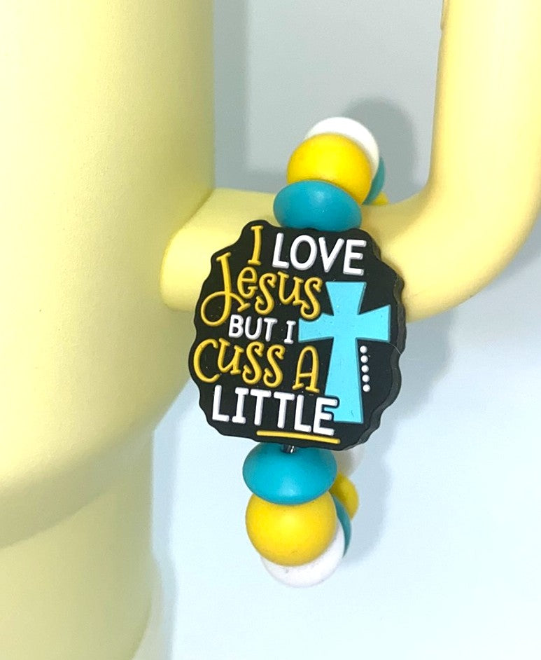 Accessorize your tumbler cup with this funny I Love Jesus But I Cuss A Little silicone bead bead cup charm. These cup charms are made to clasp around your favorite tumbler's handle. They are simple to take off and put on, so depending on your mood for the day, you can swap them out easily!