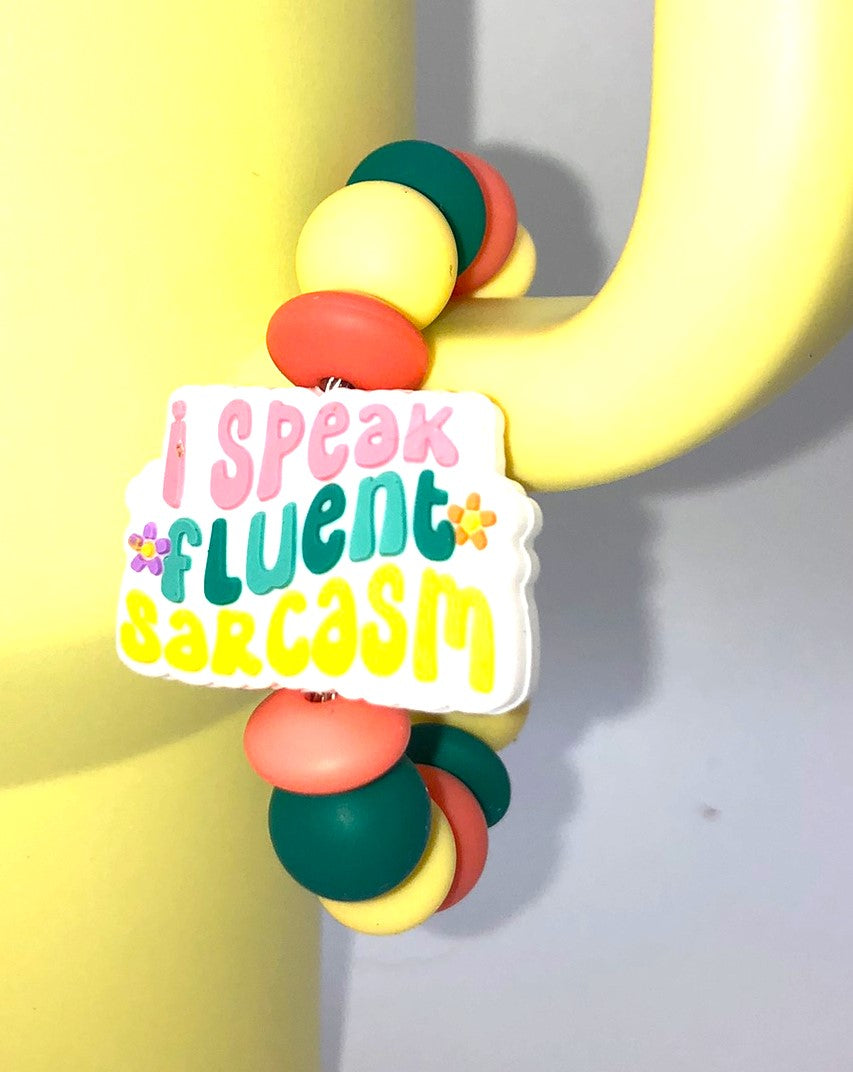 Accessorize your tumbler cup with this funny I Speak Fluent Sarcasm silicone bead cup charm. These cup charms are made to clasp around your favorite tumbler's handle. They are simple to take off and put on, so depending on your mood for the day, you can swap them out easily!
