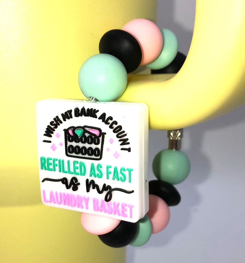I Wish My Bank Account Refilled As Fast As My Laundry Basket Stanley Tumbler Cup Handle Charm