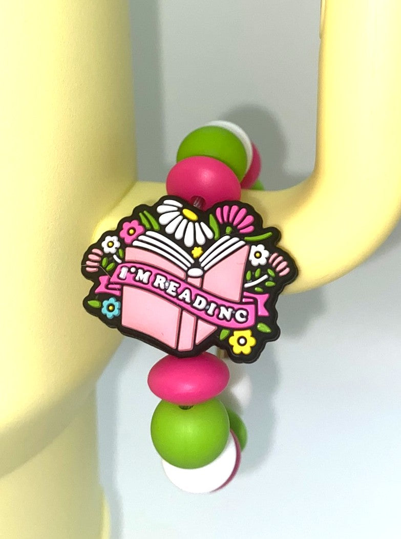 Accessorize your tumbler cup with this adorable I'm Reading silicone bead cup charm. These cup charms are made to clasp around your favorite tumbler's handle. They are simple to take off and put on, so depending on your mood for the day, you can swap them out easily!