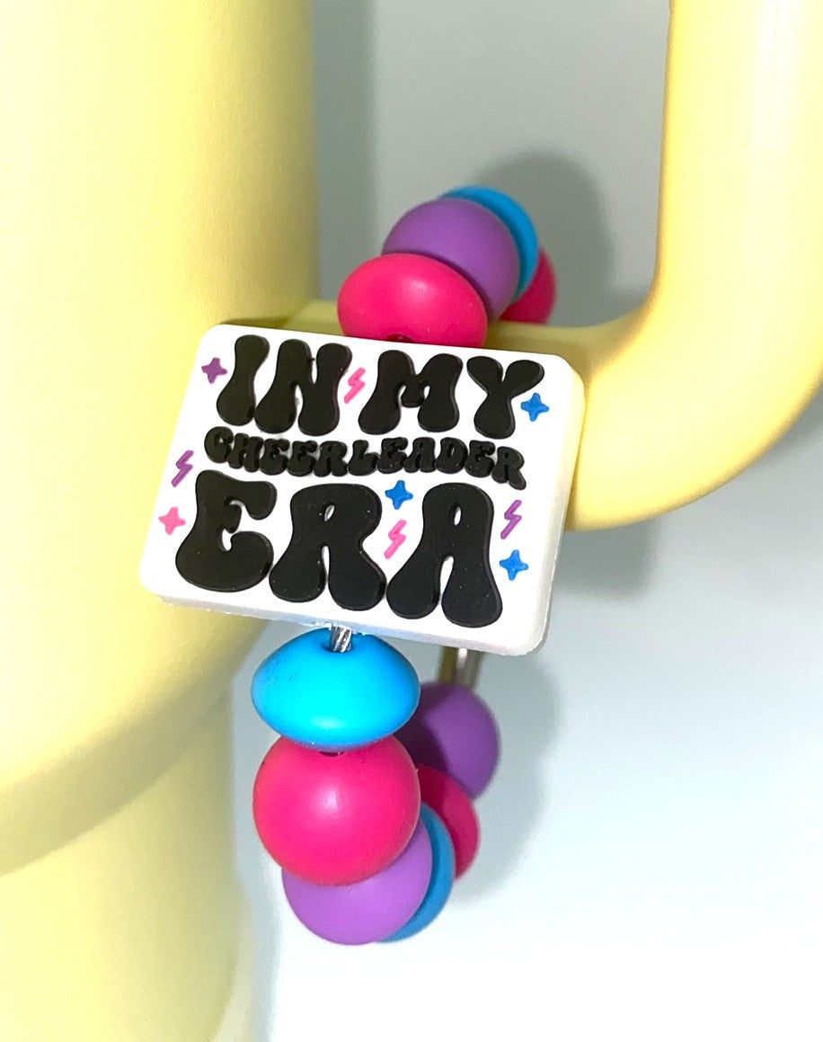 Accessorize your tumbler cup with this adorable In My Cheerleader Era silicone bead cup charm. These cup charms are made to clasp around your favorite tumbler's handle. They are simple to take off and put on, so depending on your mood for the day, you can swap them out easily!