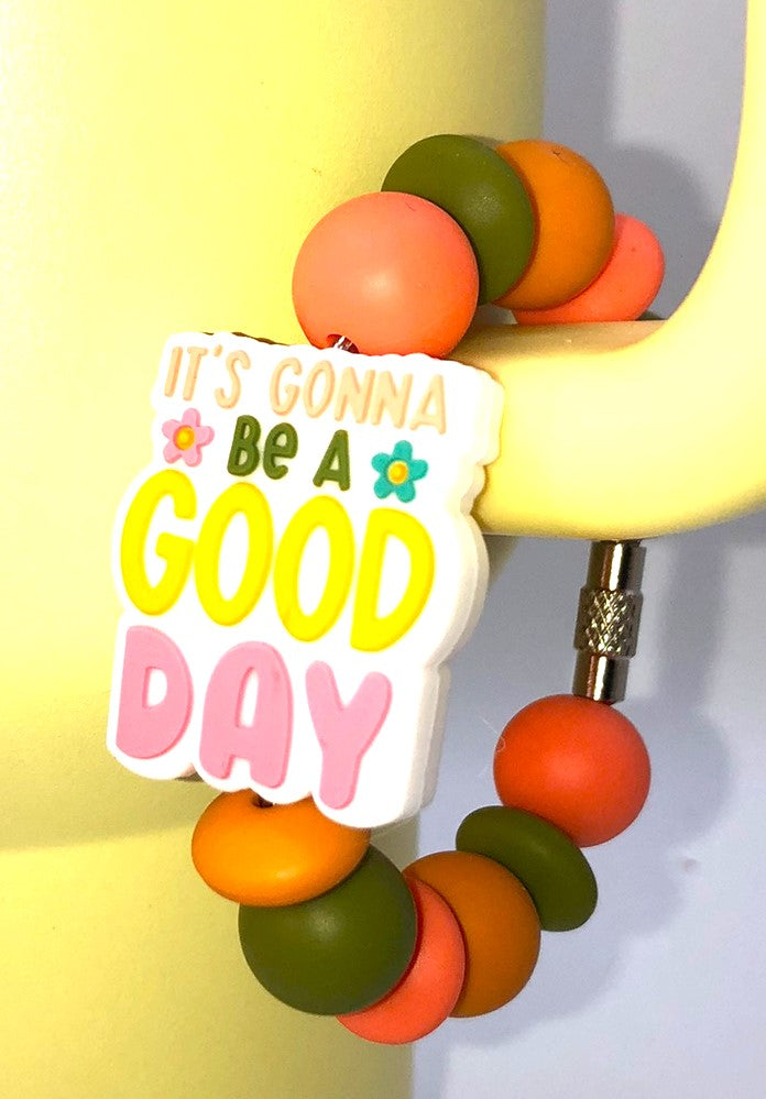 Accessorize your tumbler cup with this adorable It's Gonna Be A Good Day silicone bead cup charm. These cup charms are made to clasp around your favorite tumbler's handle. They are simple to take off and put on, so depending on your mood for the day, you can swap them out easily!