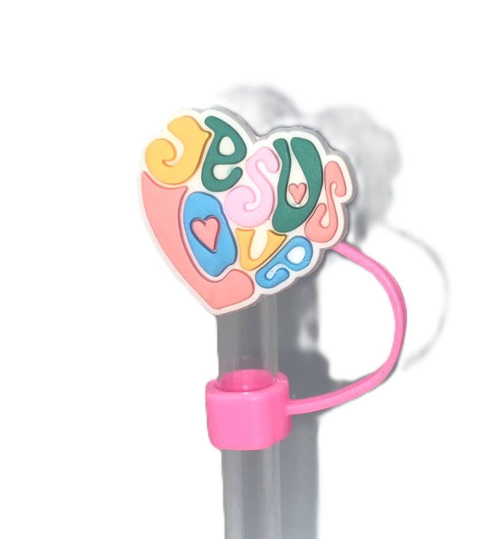 Accessorize your favorite tumbler cup with this amazing Jesus Love Heart Straw Topper. This cover fits 10mm/0.4inch straws and is compatible with Stanley 30 & 40 oz tumblers straws. Made from silicone.