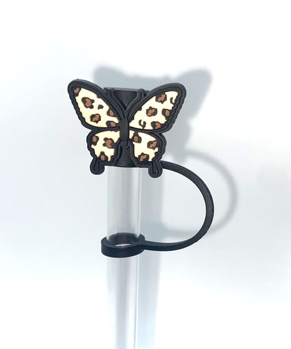Accessorize your favorite tumbler cup with this adorable Leopard Spots Butterfly Straw Topper. This cover fits 10mm/0.4inch straws and is compatible with Stanley 30 & 40 oz tumblers straws. Made from silicone.