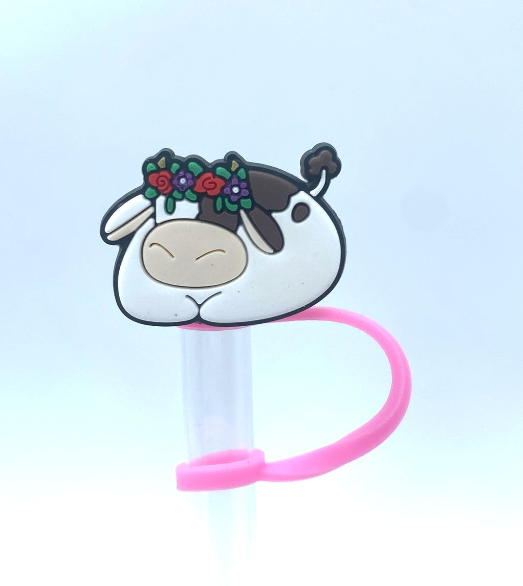 Accessorize your favorite tumbler cup with this adorable Loaf Cow Straw Topper. This cover fits 10mm/0.4inch straws and is compatible with Stanley 30 & 40 oz tumblers straws. Made from silicone.