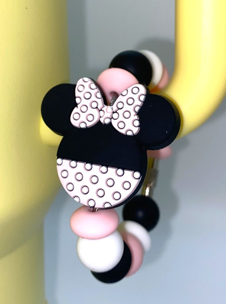 Magical Mouse Girl Ears Light Pink Double Polka Dots w/Bow Stanley Tumbler Cup Handle Charm