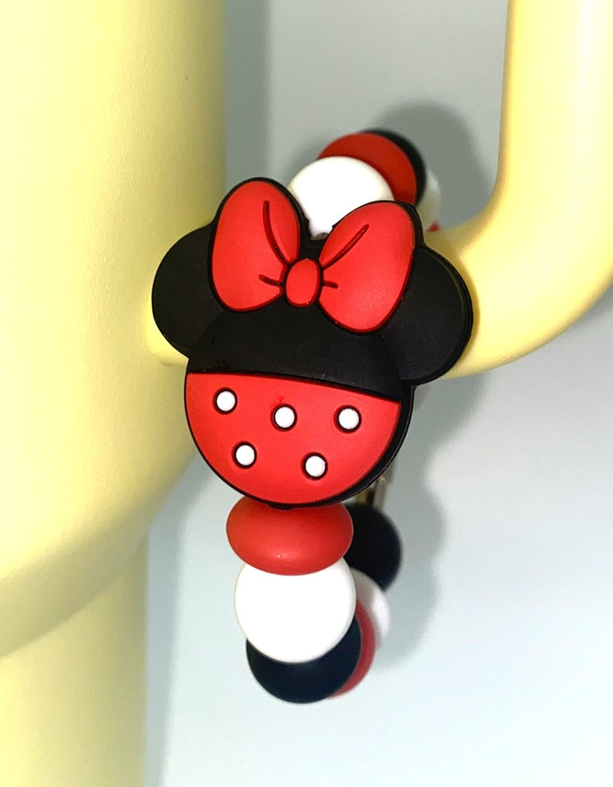 Accessorize your tumbler cup with this adorable Magical Mouse Girl Red Polka Dots Head w/Bow silicone bead cup charm. These cup charms are made to clasp around your favorite tumbler's handle. They are simple to take off and put on, so depending on your mood for the day, you can swap them out easily!