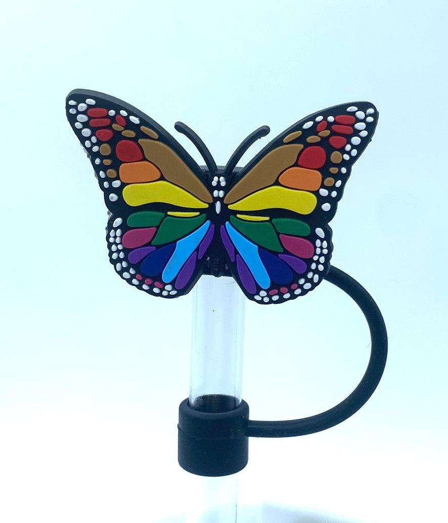 Accessorize your favorite tumbler cup with this adorable Multi Color Monarch Butterfly Straw Topper. This cover fits 10mm/0.4inch straws and is compatible with Stanley 30 & 40 oz tumblers straws. Made from silicone.