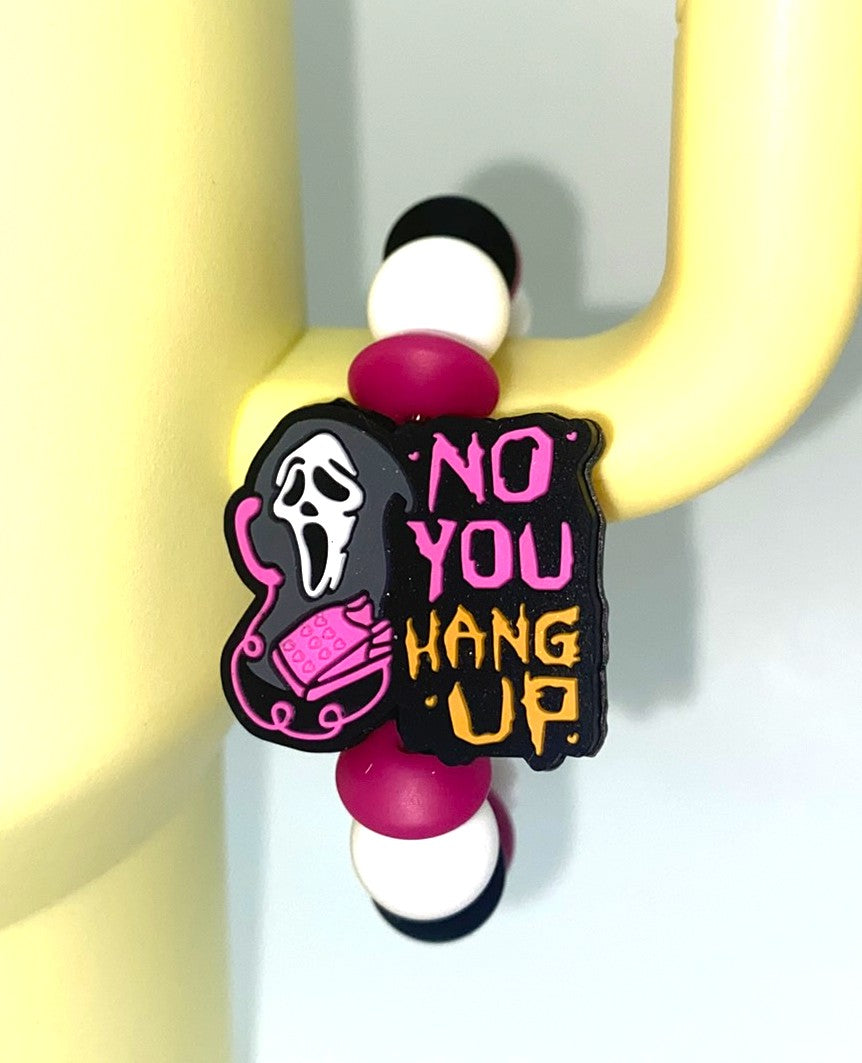 Accessorize your tumbler cup with this funny No You Hang Up Scream Mask Horror Villain silicone bead cup charm. These cup charms are made to clasp around your favorite tumbler's handle. They are simple to take off and put on, so depending on your mood for the day, you can swap them out easily!