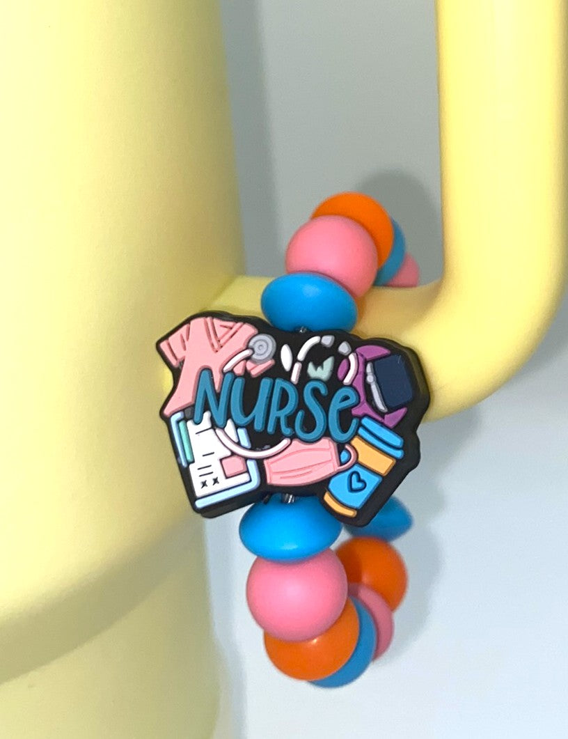 Accessorize your tumbler cup with this adorable Nurse Scrubs Chart Stethoscope silicone bead cup charm. These cup charms are made to clasp around your favorite tumblers handle. They are simple to take off and put on, so depending on your mood for the day, you can swap them out easily!